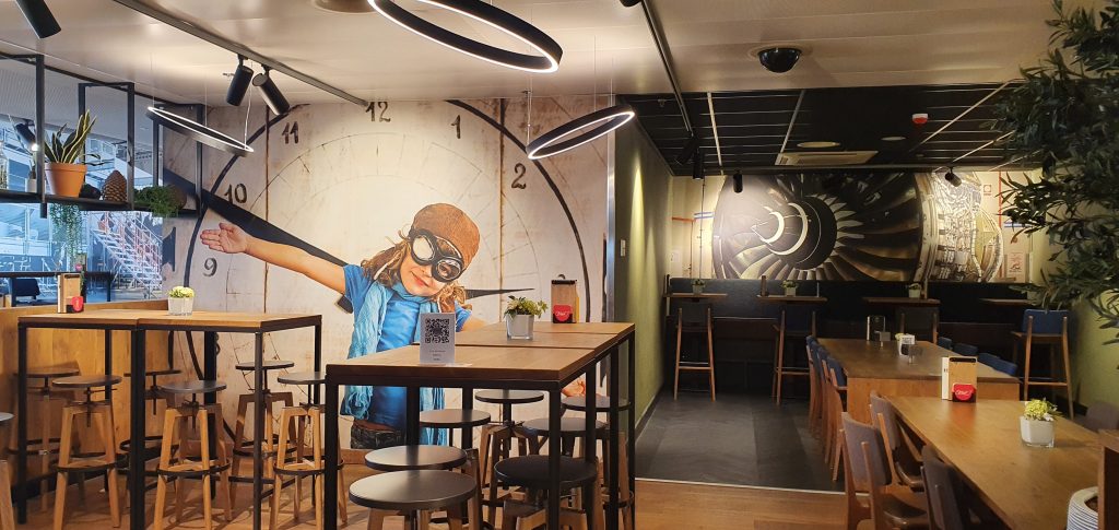 Als je Schiphol, Eindhoven of Brussel gewend bent, is dit vliegveld piccolissimo, ieniemienie. Maar daardoor is het ook enorm rustig. Zowel qua mensen als qua vliegtuigen. Heerlijk die rust. Al zijn er wel een paar piekmomenten per dag, zo vertellen zowel douane- als restaurant- medewerkers onafhankelijk van elkaar. De groep vluchten van vanmiddag zitten wel nagenoeg vol, en ’s ochtens is het ook volle bak. We merken er niet zoveel van. Genieten van ‘een bakkie pleur met lekkers’ in het restaurant voordat we door de douane staan. Alle tijd en ruimte.